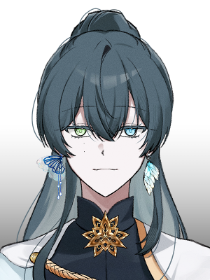 색감이 빠진 듯 보이는 어두운 남색의 머리칼이 높게 묶여 바람에 날린다.허벅지 중간, 무릎에 닿을듯한 길이로 길게 길려진 머리칼의 안쪽은 겉으로 보이는 색과 다르게 더 밝은 톤으로
